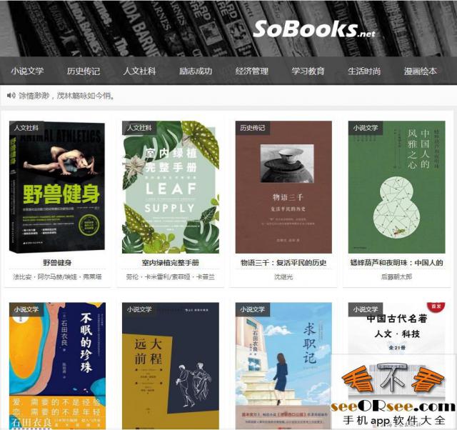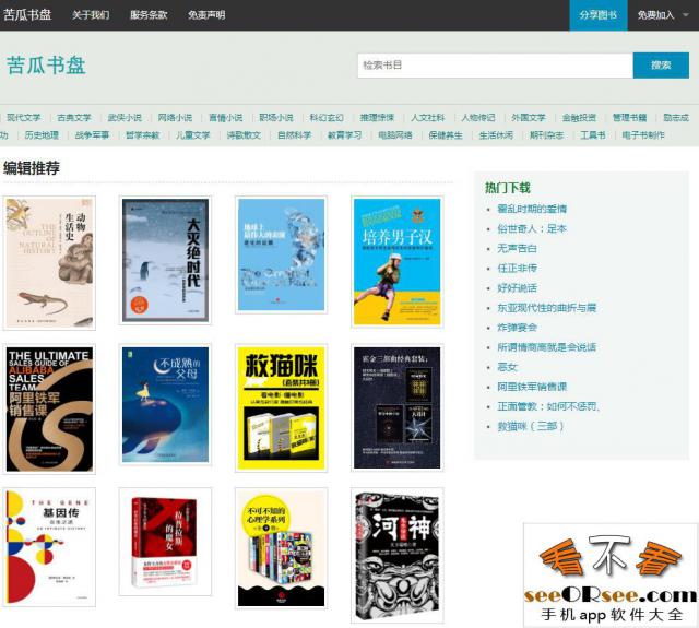 网站提供了几万本免费电子书,可以免费下载,小说党很难不心动。里面包含了小说文学、历史传记、历史社科、经营管理、生活时尚等等,范围比较广泛,是一个既能放松也能学习的网站。