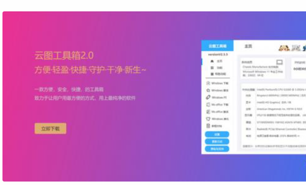 今天给各位看客分享一个电脑端的聚合型工具软件(云图工具箱),集合了很多好用的工具,系统下载,办公软件,激活工具等等,集成了很多内容,电脑可以安装一个,内置的工具都挺实用的。