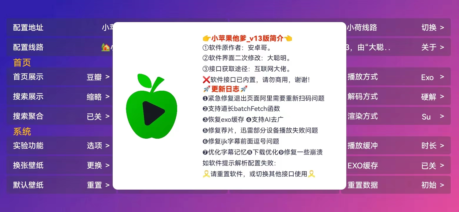 小苹果他爹V13版本 基于影视仓 5.0.34_3版(7.17下午16点左右更新)修改 已内置多仓。