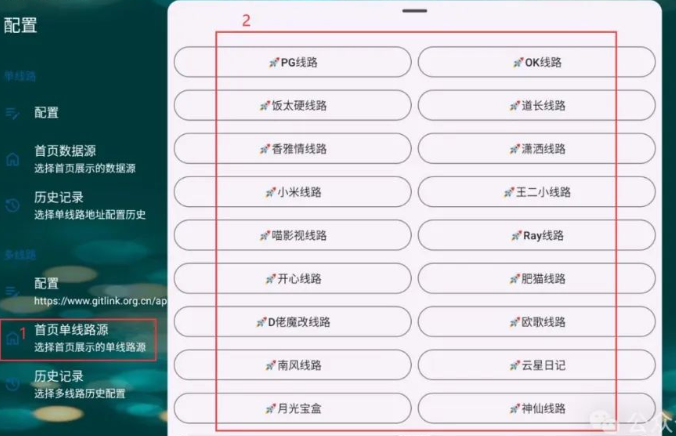 使用方法:打开软件设置界面,找到“配置”,然后出现单线路和多线路等选项,点击多线路下方“配置”按钮,弹出一个地址输入框,但是上方标题是“壁纸”,这个可能是作者未发现这个文字错误,大家不要在意,输入文中图片下载提供的多线路地址,点击确定,然后再继续点击“首页单线路源”,选择你要使用的接口即可。