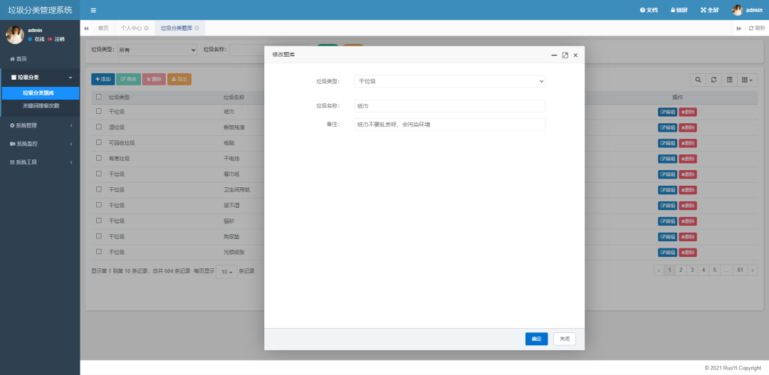 数据库准备,创建一个 名称为 garbageSort 的数据库,把跟目录下 garbagesort.sql数据库文件进行导入进去即可。