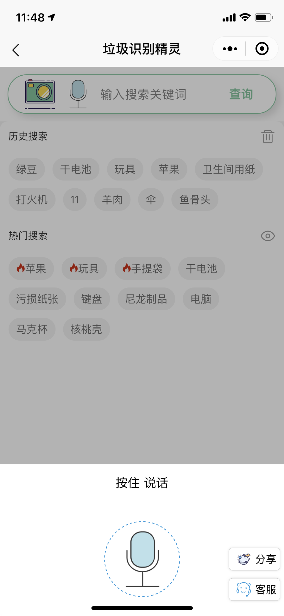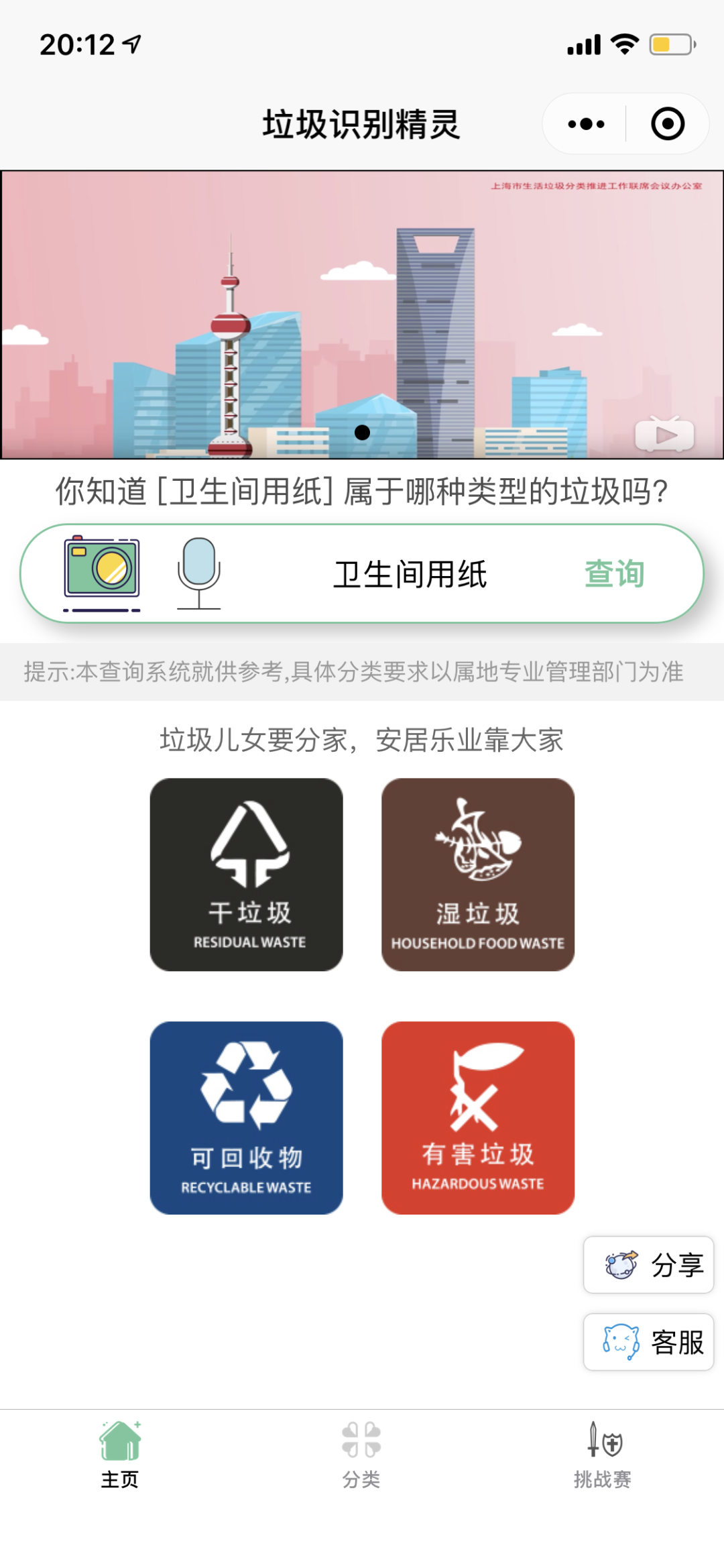 这是一款个人开发的微信小程序,集 文字查询、语音识别、拍照识别其垃圾分类的小工具。